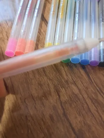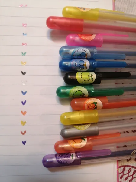 خیلی خودکار های عالی و خوشبو ای هستن ظاهر و کیفیت و بوی خوبی دارن و خوب رنگ میدن ولی یکی از خودکار های بین جوهرش فاصله داشت و رنگ نمی داد و منم نمیدونم چجوری درستش کنم