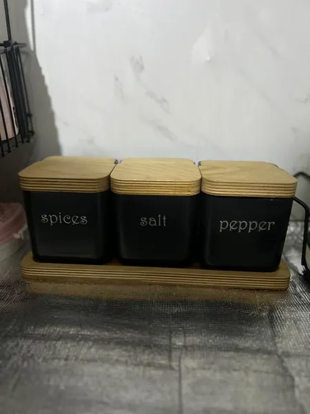 جا ادویه ؛ جنسش خیلی خوبه شیک و قشنگه اندازه اش برای ادویه مناسبه درکل شبیه سرامیک هست قیمتش هم مناسبه