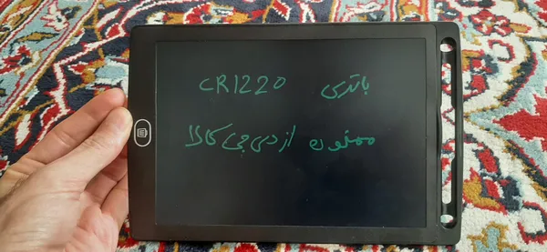عالی ؛ واقعا از خریدم راضیم ، کیفیتش عالیه ، جنسش خوبه و نازکه ، باتریش توی دیجی کالا هست و باید سرچ کنید«باتری سکه ای cr1220» خط و خش روش نمیوفته و واقعا عالیه ، قیمت خیلی مناسبی هم داره ، ۸.۵ اینچ هست و صفحه LCD که از رقیب هاش بالا تره و خفن تره. یه قفل هم داره که اطلاعاتی که نوشتید به صورت اتفاقی پاک نشه تاریخ ویرایش: 1401/09/26 الان حدودا ۱ سال شده که از خرید این تخته گذشته و میتونم بگم واقعاً تا امروز خیلی خوب کار کرده ، توی این ۱ سال ۱ بار باتریش رو عوض کردم و واقعا کارمو راه انداخته نسبت به ضربه هم مقاومت خوبی داشته با اینکه برند متفرقه هستش ، مزیت این مدل نسبت به مدل های متفرقه دیگه اینکه که باتریش راحت تر پیدا میشه که براتون مدل باتری هم نوشتم میتونید از دیجیکالا با قیمت مناسب و ارزان تر از بیرون خرید کنید و عکس باتری هاشم براتون میزارم امیدوارم توضیحات کامل بوده باشه