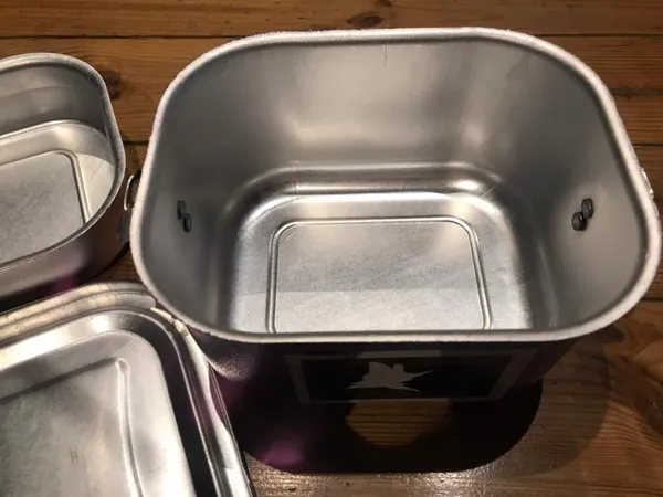 ظرف غذا ؛ براثر گرما داخل ظرف سیاه شد و رنگهای ظرف ریخت من قبل مارک دیگری خریده بودم که بعد ده سال هنوز رنگ وروش خوبه وفقط قلابهاش تیره شده این ظرف دیروز به دستم رسید وفقط یکبار استفاده شد وصد وپنجاه هزار تومان انگار دور ریخته شد