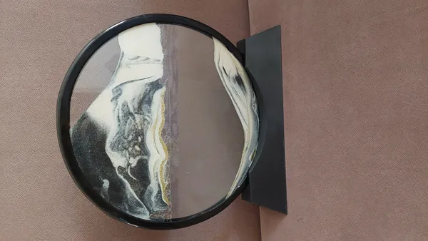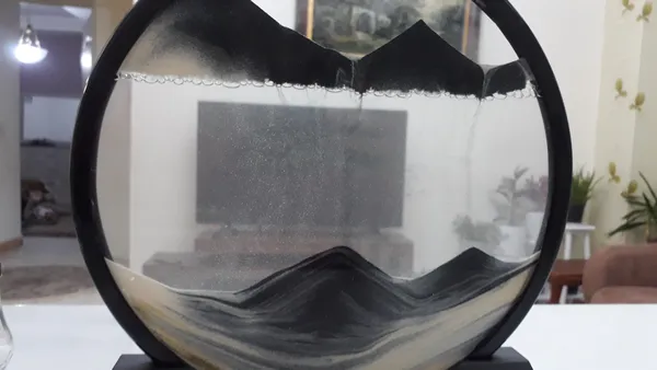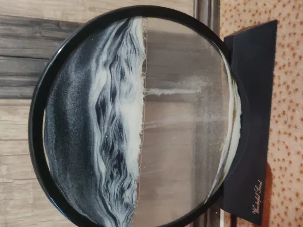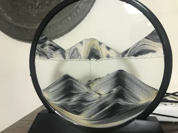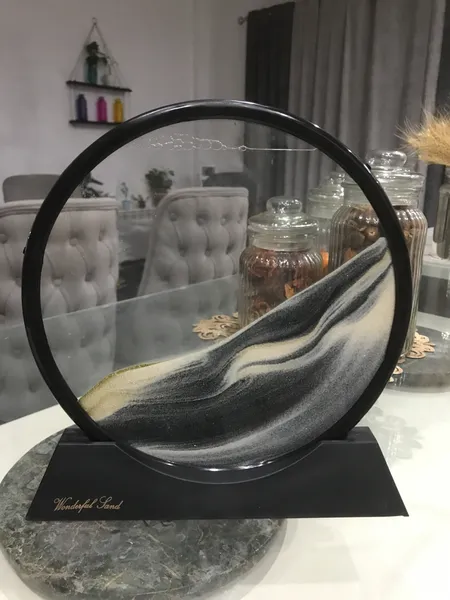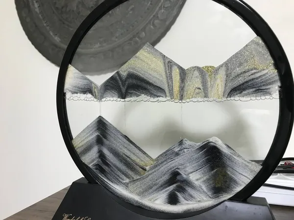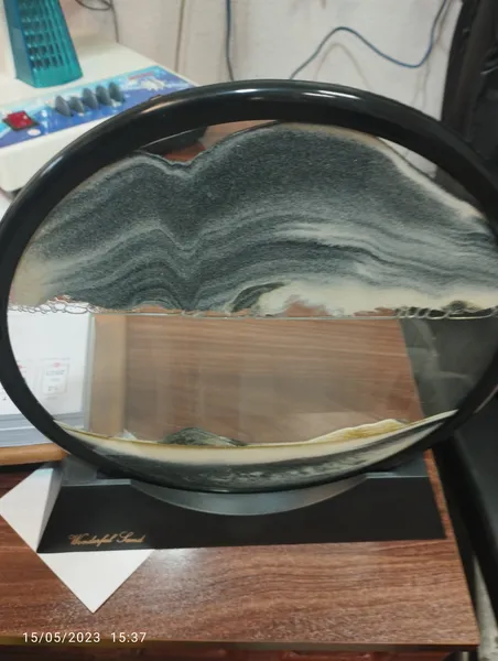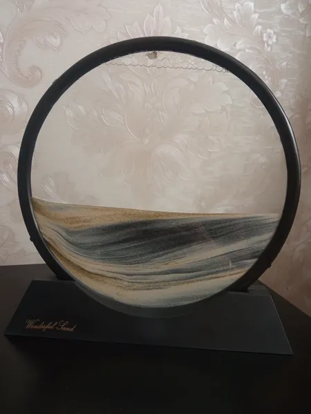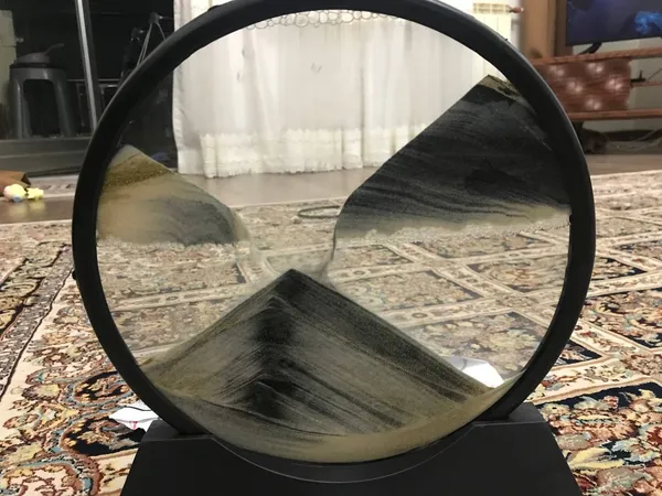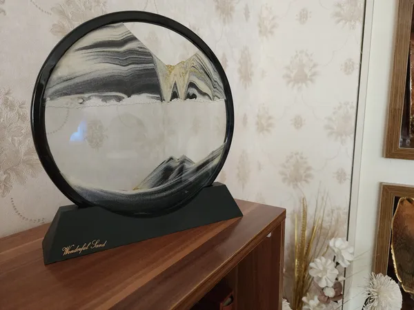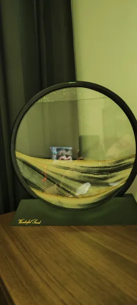 تابلو شنی ؛ طرح زیبایی پیاده شده ولی اول اینکه توی پایه لق میزنه و دوم اینکه بعد از چتد دقیقه دیگه شنها متوقف میشه و پایین نمیریزه! باید مدام تلنگر بزنی بهش تا یکم شن بریزه