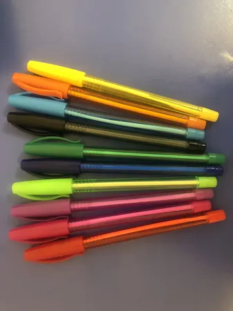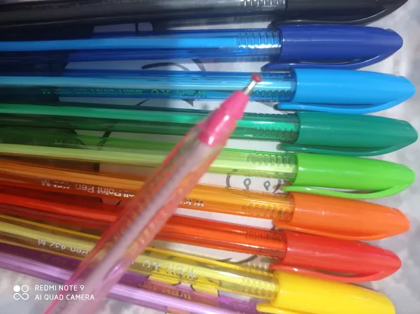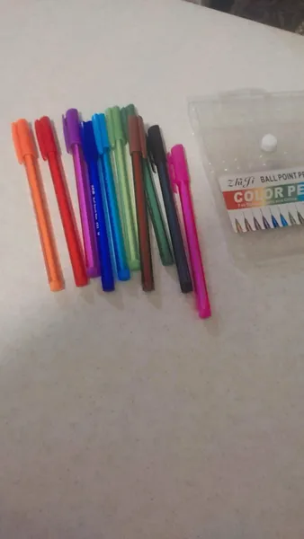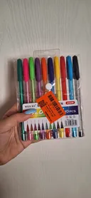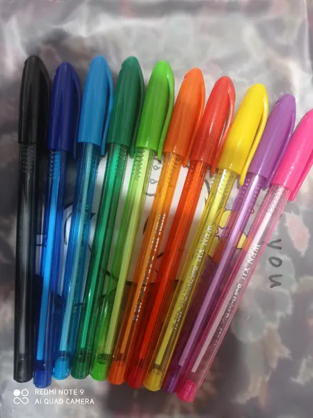 خودکار رنگی ؛ خودکار ها عالی بود مشکلش این بود که روی کاغذ زیاد روان نیست اگر پلاستیک های سرش رو بد بکنید چون تقریبا به نوک ها چسبیده در کل عالی بود