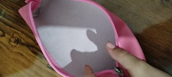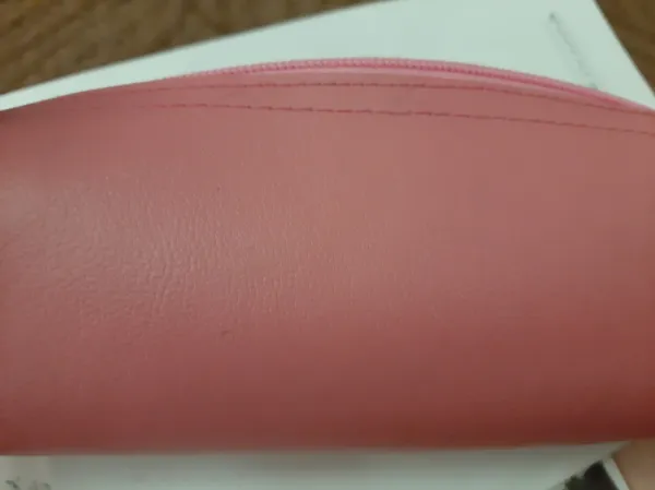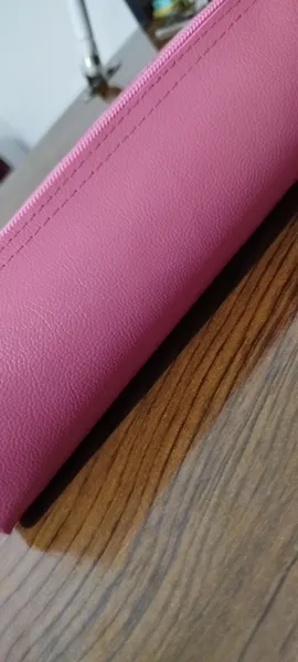 محصول ارسالی با عکس کاملا متفاوت ؛ در تصویر جامدادی آهار دار خوشگل رنگ صورتی ملایم ولی در واقعیت مدل مامان دوز با پارچه صورتی زشت براق