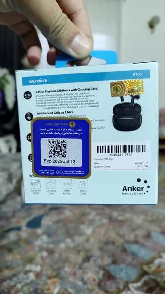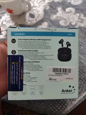 انکر R100 ؛ هندزفری با گارانتی ۱۸ ماهه تامین پیشرو شار ارسال شد. در سایت انکر هم استعلام گرفتم اصلی بود. بعد از سه ماه استفاده نسبت به قیمت کیفیت صدا و بیس قابل قبولی داره و باتری اون هم به نسبت خوبه ولی کیس به راحتی اثر انگشت روش میمونه و خش میوفته و حتما باید براش کاور بگیرید. درب کیس هم یکم لق و شل و وله