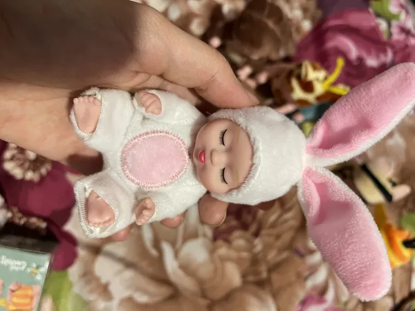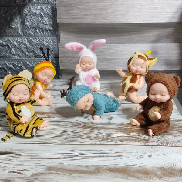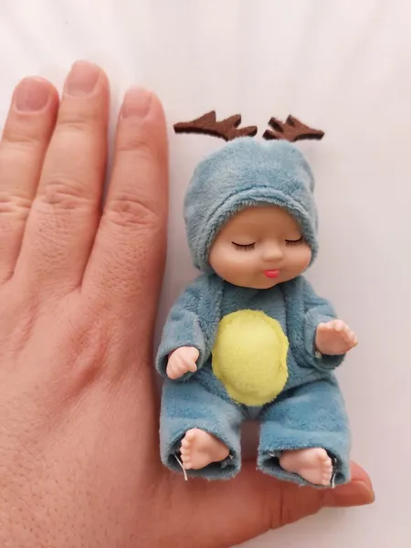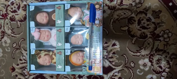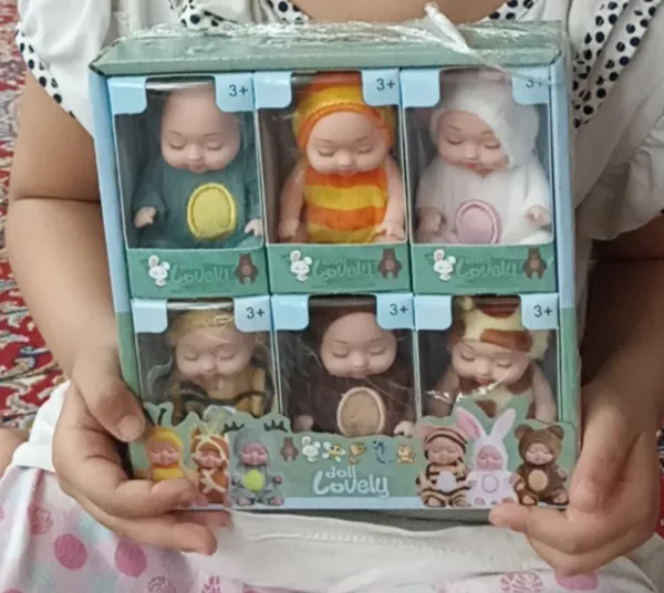 اندازه اش خیلی کوچیکه ،صورتش نرمه ولی مابقی قسمت ها از پلاستیک خشک درست شده،همه عروسک ها یکیه فقط لباساشون فرق میکنه،در کل بامزه هستن