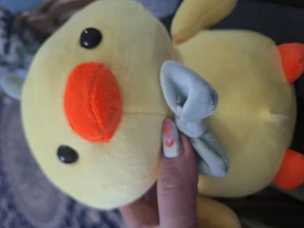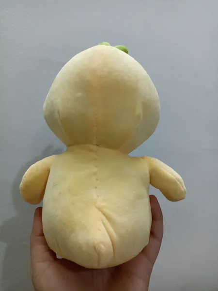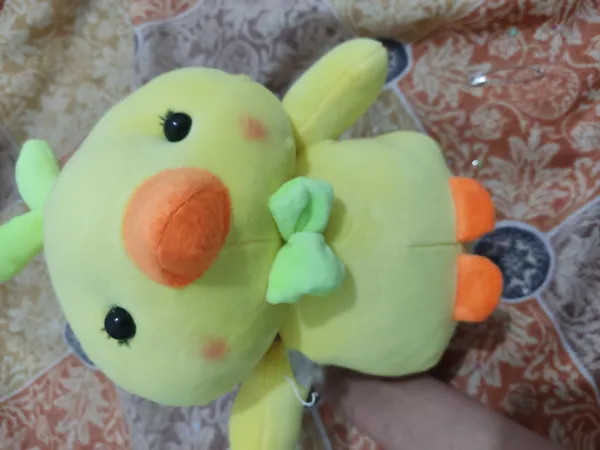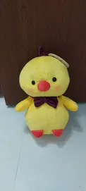 عروسک جوجه ؛ جنس پارچش نرم و خوبه، قیافشم بامزس ولی دوختش تو ی قسمتا خوب نیست....و سرشم کجه انگار