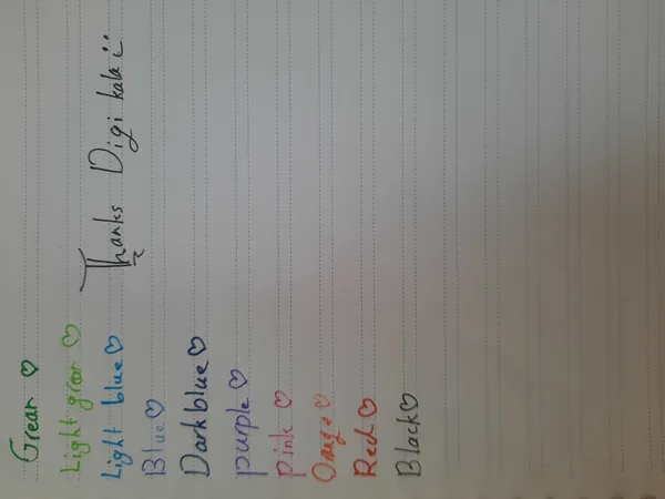 اونی که من میخواستم نبود ؛ روش برچسب رنگ هاشو ننوشته مثل خود عکس نیست بعضیاش هست ولی یه سری از رنگاش نیست به هر حال خوب مینویسه اولش باید یکم باهاش بنویسی یجایی تا جوهرش بیشتر بده