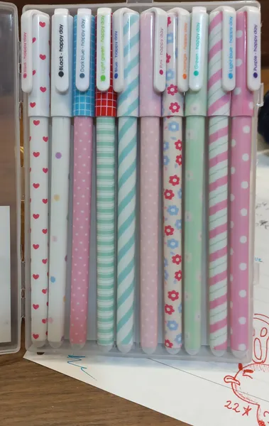روان نویس هپی دی ؛ روان نویس های خیلی خوبین، یعنی میشه روشون حساب کرد . من برای جزوه نویسی گرفتمشون که جایگزین راپید کنم ، و خب خوبیش هم اینه که زود خورد کاغد میره و پخش نمیشه . جوهرش هم راحت و سریع بیرون میاد و خشک نشده