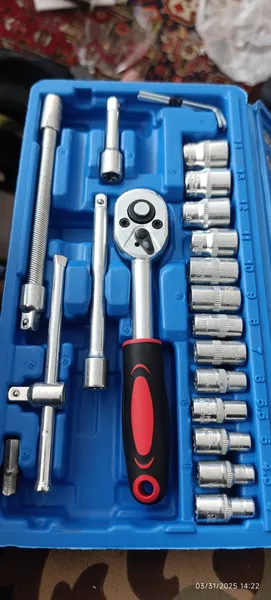خوش قیمت و کاربری ؛ کیفیت خوبی دارد و به قیمت بسیار به صرفه است. با پولی که پرداخت می کنید امکانات و کیفتی عالی دریافت می کنید. بکس درایو 1/4 هستش. آچار تی یا همون ستاره دارد. پیچ گوشتی دارد، لقلقه دارد، هرزگرد دارد
