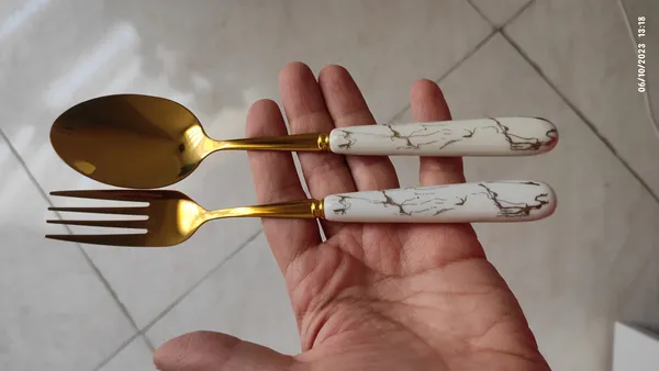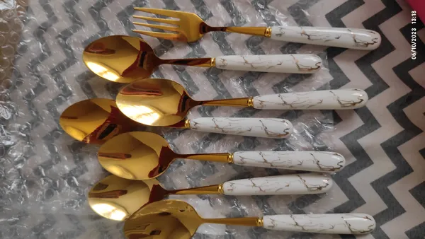 قشنگه ؛ قاشق ها در بعضی جاهاش خیلی کم رنگاش رفته بود ، در کل راضی بودم از ظاهرش تا بعد استفاده باز نظرمو به روز میکنم ، کاش جعبه داشتن چون من برای کادو گرفته بودم