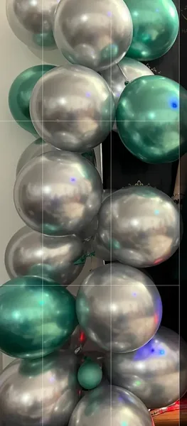 بادکنک ؛ سه تا بسته گرفتم که تو ده تا ۵ تاش مشکل داشت سوراخ نبود ترسیدم بترکه اما مرجوع کردم قبول کردن بقیش سالم بودن بعد از باد شدن و دیزاین قبل از رسیدن مهمونا یکی یکی سبزا میترکید جنس نقره ایا عالی جنس سبزها آشغال بود یدونم سبز نموند البته من ۵ تاشو از فروشنده دیگه گرفتم ببینید چی بود چی شد خیلی پر تر بود قبل عکس البته حدود ۶۰ تا بادکنک