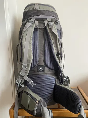 کوله ۷۵ لیتری به همراه کمل بک و کاور، بسیار جا دار و البته با کیفیت به نظر من ارزش خرید دارد. رنگ سبز آن کمرنگ است و روی کوله نوارهای شبرنگ کار شده که عکس آن را قرار می دهم. زیپ ها در کل خوب است و قسمت جدا کننده داخلی تا حدودی قابل قبول است. ارتفاع کوله های ۷۵ لیتری قطعا زیاد است و بند های آن برای من با قد ۱۷۳ سانتیمتر خیلی راحت تنظیم نمی شود. البته من کوله ۷۵ لیتری تا به حال نداشته ام و نمی توانم با سایر کوله ها مقایسه کنم ولی عکس قسمت بند های پشتی را قرار می دهم