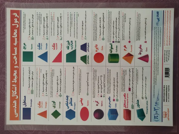 نظرات و تجربه خریداران پوستر آموزشی انتشارات اندیشه کهن مدل فرمول محاسبه مساحت و محیط اشکال هندسی کد B4