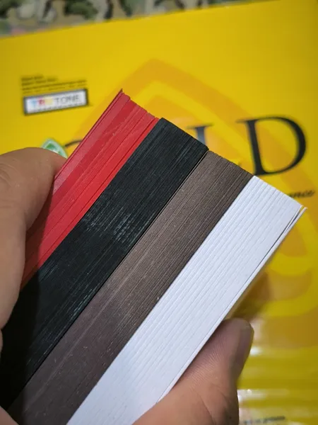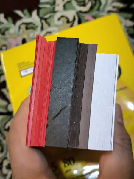 ۴ رنگ از ۱ فروشگاه خریدم کیفیت وزنی و ضخامت مشکی و سفید از بقیه بهتره ابعاد میزان میباشد البته بغیر قرمز که برشش یکمی مشکل داره البته زیبا بودن در کل. همه رنگاش تناژ رنگ خیلی خوبی دارن ارزش داره همه رنگاش بخرین ✌️ کاش رنگ ها متنوع تر بود