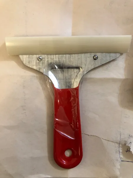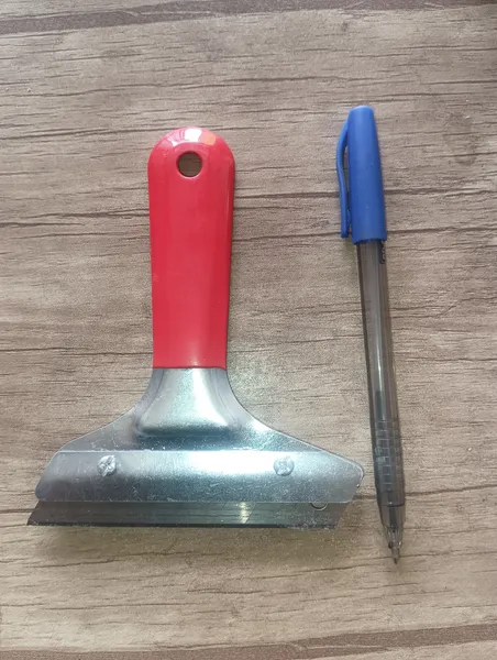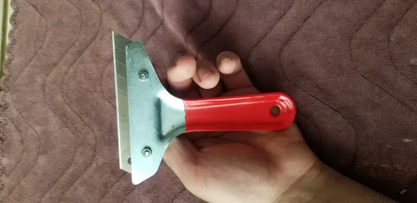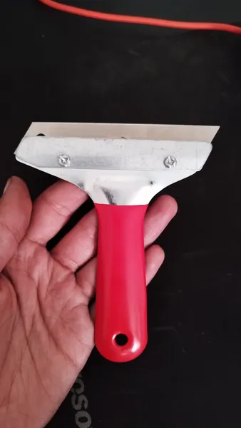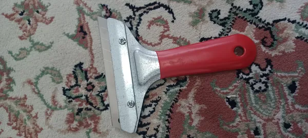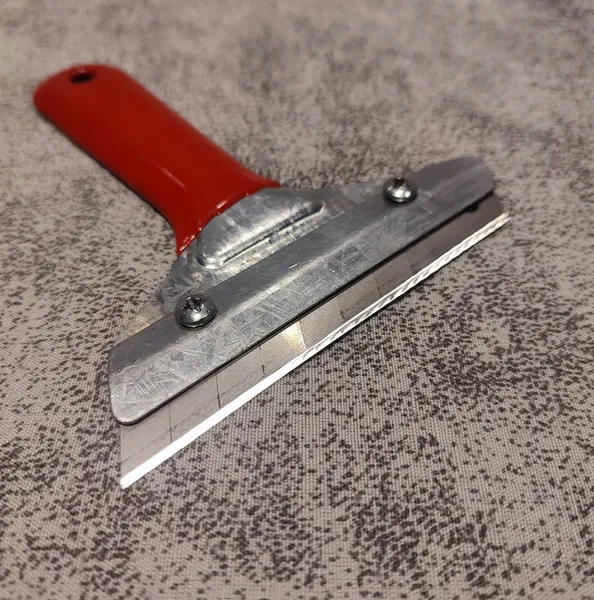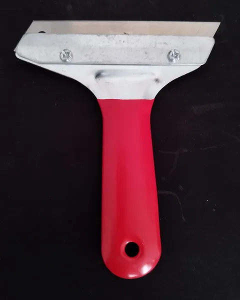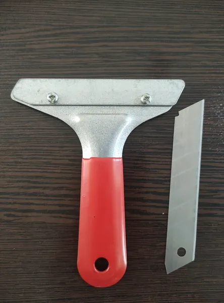 پیچ های فک نگهدارنده تیغ فاقد مهره هستن. ۲ پیچ ریز (نیم سانتی) چهارسو هستش. دسته (قسمت قرمز رنگ) ۹ سانتی متر و از قسمت قرمز رنگ تا لبه تیغ ۵ سانتی متر و عرض قسمت تیغ ۱۰ سانتی متر و عرض دسته قرمز رنگ ۲.۵ سانتی متر است - در یکی از نظرات پیشنهاد خوبی برای استفاده از شیرازه پلاستیکی جزوه برای پوشاندن تیغ شده بوده که استفاده کردم. شیرازه های نو لبه هاشون کیپ هستش، قبلش کمی با دست باید لبه ها رو باز کرد تا تیغ راحت داخلش فک بره. و لازمه طول شیرازه هم کمی بزرگتر از طول تیغ باشد (حدود ۱۲ سانتی متر) و برای اینکه شیرازه خارج نشه دو طرفش رو چسب زدم. در عکس ها نما از بقل رو گذاشتم که اندازه پیچ و نحوه گرفته شدن تیغ در فک کامل مشخص باشه