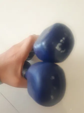دمبل ؛ در کل خوب بود،من راضی بودم.فقط رو یکی از دمبل ها یه خش عمیق داره که عکسشا واستون میذارم و یکمم چسبناکه که خیلی مهم نیس