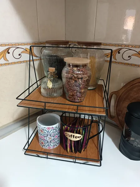 بنظرم خیلی واسه نظم وسایل خوبه و آشپز خونه رو زیبا میکنه من که خیلی دوسش دارم ؛ امروز به دستم رسید خیلی راضی هستم خیلی قشنگه آشپز خونه رو زیبا میکنه وخیلی نظم میده من با اون بانکه ها خریدم واسه دمنوش هام