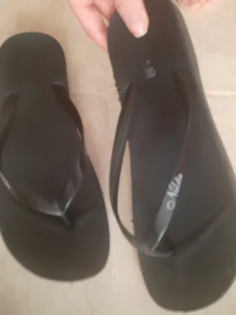یه تیکه لاستیکه. وقتی مداوم استفاده میکنم رنگ مشکی میده به کف پا. اون قسمت انگشتی، خط برش پلاستیکش بین انگشتام قرار میگیره و خیلی آزار دهندس.دور کفی خورده پلاستیک هست بنداشم خیلی باریکه اگه از نزدیک میدیدم نمیخریدم قطعا