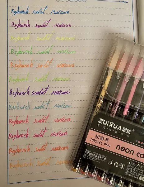 خودکار مدل پاستلی شبرنگ ؛ همون خودکاری گه داخل عکس گذاشته بودن نبود ، خوشگل و خوشرنگ بودن ولی بعضی هاش کمی گیر داشتن ، بیته بندی ضعیف بود و اکلیلی هستن ، رنگ های پاستلی نبودن، ناراحت شدم ولی خیلی بد نیستن