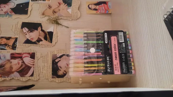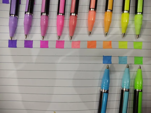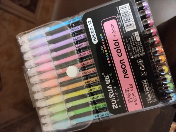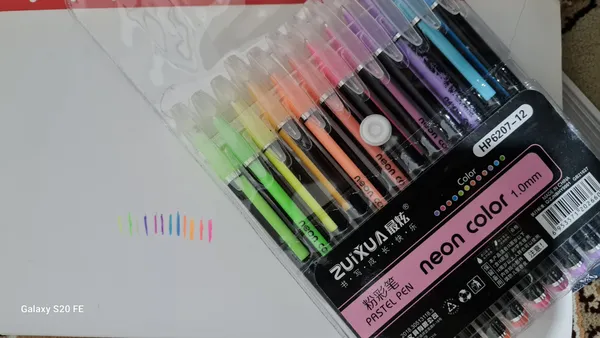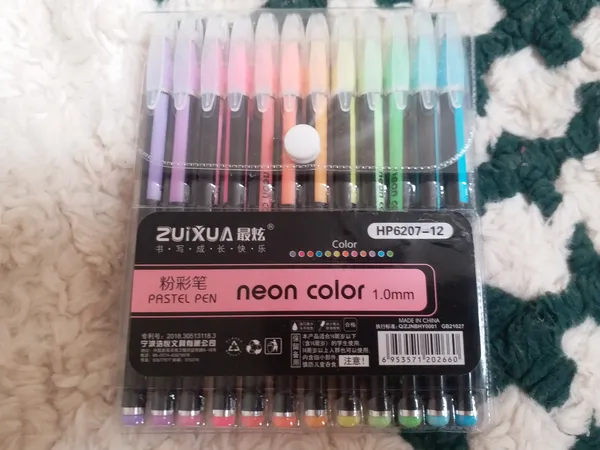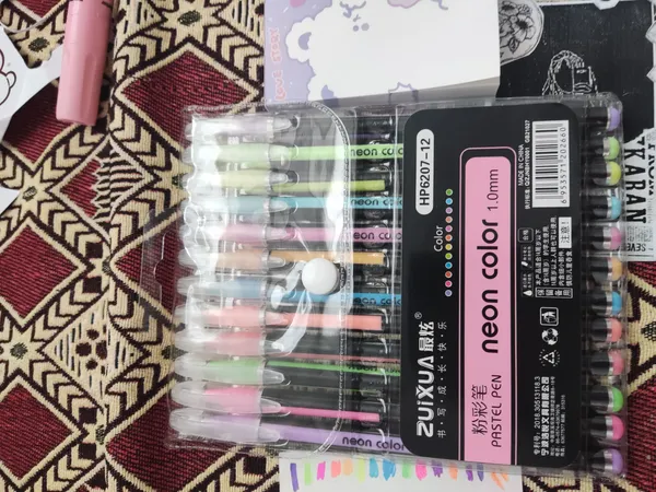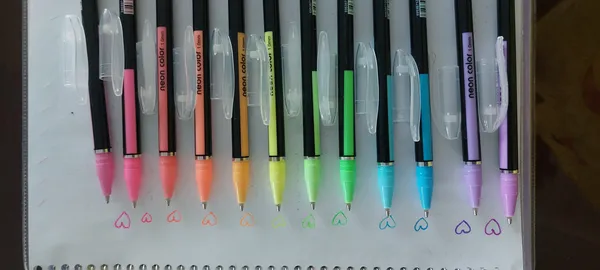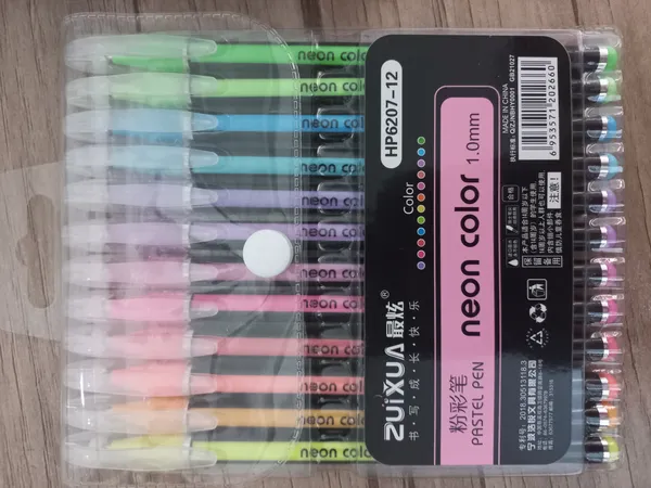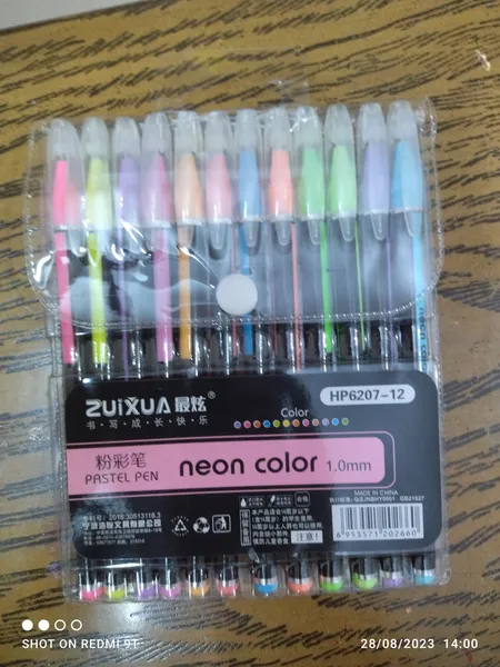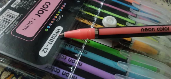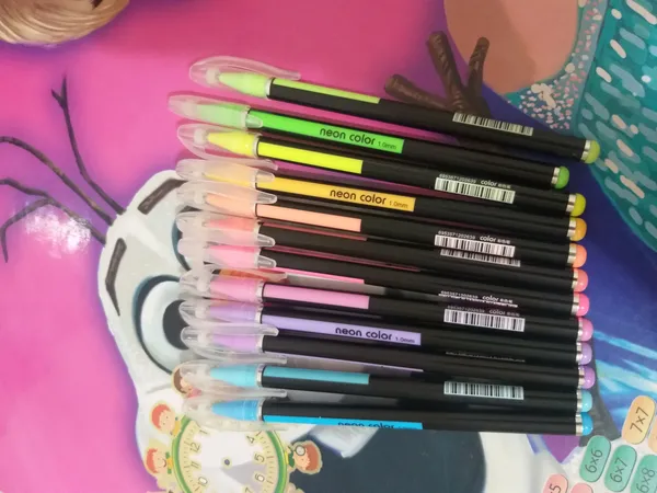 خودکار نئونی ؛ روی کاغذ مشکی جوابه ولی اگه با دست زیاد بکشی روش پاک میشه ولی روی کاغذ سفید اوکیه ؛ رنگ هاش قشنگه ولی بعضی رنگ ها خیلی شبیهن (بنفش، صورتی، سبز و ابی)، بوی خوبی داره جوهرشون