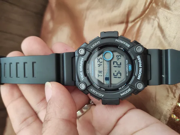 کاسیو با گراف جزر و مد ؛ چند روز پیش این ساعت رو سفارش دادم، چون در پیشنهاد ویژه خریدم خیلی قیمتش مناسب بود، این مطلب و با توجه به مقایسه قیمتها در بقیه سایتها میگم. برای بنده که کارم تو دریاست آپشن جزر و مد و فاز ماه بسیار برام کاربردی بود و همین ویژگی باعث شد این ساعت و بخرم. البته در دفترچه راهنما که از اینترنت دانلود کردم نوشته بود جزر و مد این ساعت فقط یه دید کلی میده و قابل رفرنس نیست که خب این و خودم از قبل هم میدونستم. با وارد کرد طول جغرافیایی اون نقطه گراف جزر و مد و فاز ماه تنظیم میشه. ساعت دوم هم قابل تنظیمه که میتونید ساعت هر جای دیگه دنیا رو وارد کنید و هر وقت خواستید تایم و مقایسه کنید. چون نور ساعت بیشتر از سه ثانیه روشن نمی مونه و سریع خاموش میشه در جاهای تاریک امکان تنظیم کردن ساعت وجود نداره ( خیلی سخت میشه در واقع) میتونید برای ساعت ۳ تا آلارم تنظیم کنید و با انتخاب خودتون این آلارم میشه برای همون روز خاص باشه یا بصورت دایمی و هر روز زنگ بخوره و همینطور تکرار آلارم هم برای آلارم اول قابل فعال کردن هست. درمورد شیشه ساعت هم به نظرم دیجیکالا اشتباه نوشته و معدنی نیست و اونجور که تو سایت خود کاسیو دیدم رزینه، همین هم باعث میشه امکان خط و خش افتادن روی شیشه وجود داشته باشه، ولی چون صفحه ساعت یه مقدار بالاتر از شیشه ساعته تا حدی از شیشه محافظت می کنه ولی باید مراقب بود. هر چند صفحه ش بزرگه ولی ازون مدلهایی هست که شاید خانم ها هم بپسندند ، البته اگه ساعت با صفحه بزرگ دوست داشته باشند. چند تا عکس هم از ساعت گرفتم که براتون میذارم، امیدوارم به کارتون بیاد. گارانتی ۱۲ ماهه پوزیترون هم خیلی راحت فعال شد. در کل ساعت بسیار خوبیه و من که حسابی ازش لذت میبرم