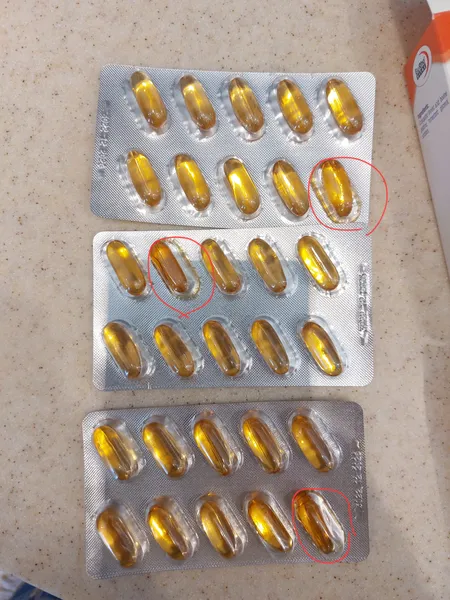 تعدادزیادی از کپسولها سوراخ شده بود مایع داخل آن به بیرون ریخته بود و رنگ کپسولها با محصولی که از داروخانه تهیه میکنی متفاوته