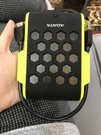 نه چندان جذاب ؛ 1800 گیگ به شما فضا میده برای سرعت انتقال داده از یک فایل 1.5 گیگی در ویندوز 10 و با آنتی ویروس بیت دیفندر تست انجام دادم. سرعت به 95 تا 100 مگ بر ثانیه رسید که منو راضی کرد. جنس کاور پلاستیکیش جوریه که غبار بهش میچسبه و به سختی پاک میشه. جنس کابلش هم مثل تمام محصولات ADATA خیلی خشک هست و من همیشه باهاش مشکل داشتم. فقط جای کابل روی بدنه طراحی جالبی بود که پسندیدم. خریدم به خاطر ضد آب بودن و ضد ضربه بودنش بود. در مورد ضد آب بودنش تردید جدی دارم. از کنار پورت ورودی مدار داخلش پیداست و فکر میکنم فقط وقتی ضد آب هست که در پوش کاور بسته باشه که همونجور که توی عکس مشخصه درپوشش هم خوب چفت نمیشه. با این شرایط و توصیفات شاید خرید یه هارد وسترن با کاور محافظ و کیف یه گزینه جدی به جای این محصول و از لحاظ قیمتی خیلی به صرفه تر باشه
