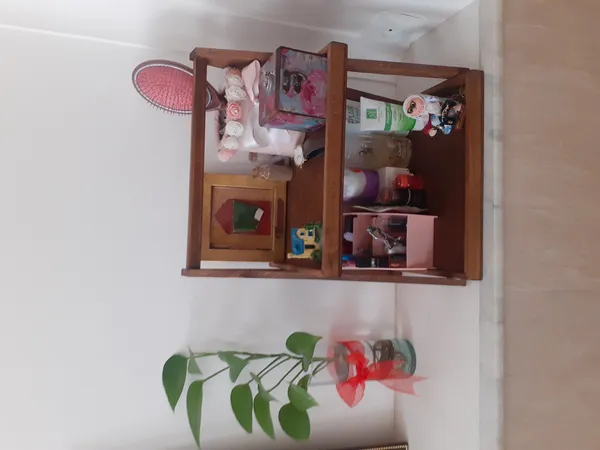 استند چوبی قهوه ای روشن ؛ رنگ و طرحش رو دوس دارم و مهمتر از اون ارتفاع طبقات که بسیار خوبه برای گذاشتن چیزهای مختلف