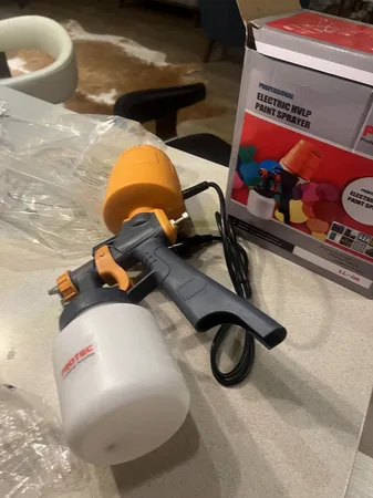 دستگاه پمپ و پیستوله رنگ HVLP ؛ صدای وحشتناک (همسایه ها شاکی شدند) ، محیط کاملا تمیز باشد وگرنه گردو غبار شدیدی راه میندازه ، در محیطهای خاکی به درد نمیخوره