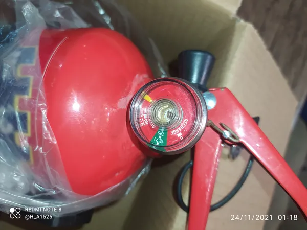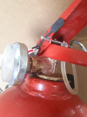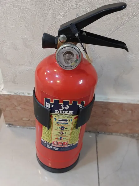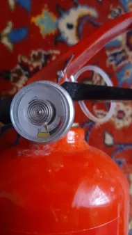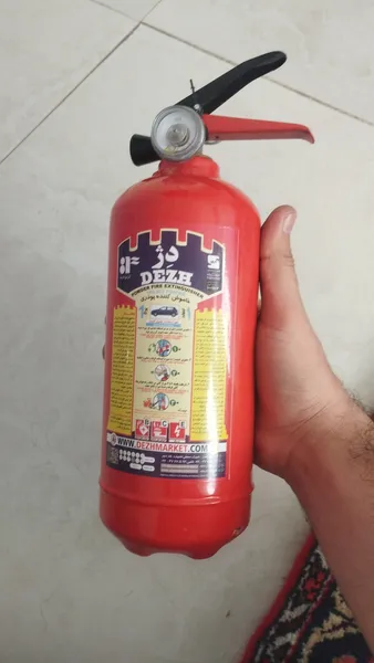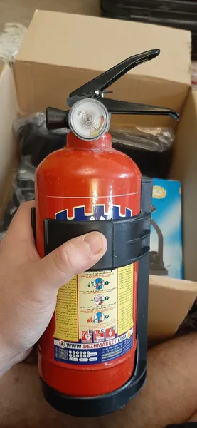 کپسول آتش نشانی دژ یک کیلو ؛ عقربه گیجش شکسته بود افتاده بود توش مشخص نیس شارژش چقدر و خطرناکتر اینکه خار ضامنش هم نبود و ضامن براحتی در میومد که من یه میخ انذاختم
